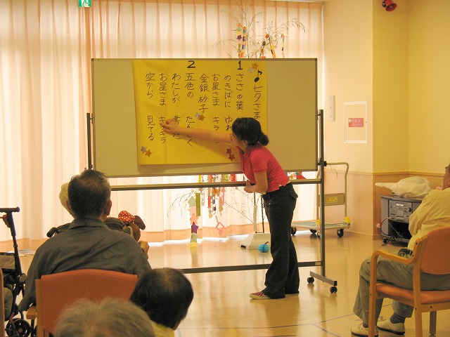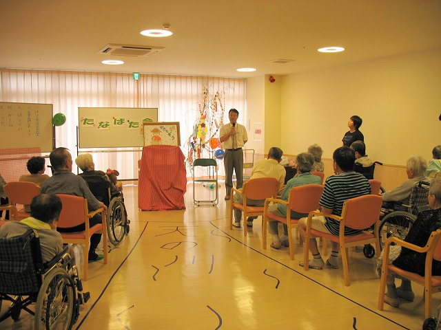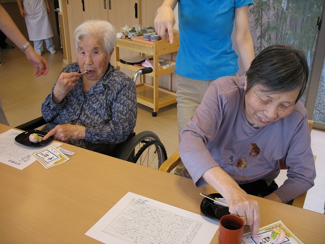 平成21年7月15日(水) 和菓子作り体験 今日は和菓子職人さんを招いて 和菓子(練り切り)作りの体験です。 季節の果物などを模り、 食べるのがもったいないくらい! 利用者様も上手に作られていました